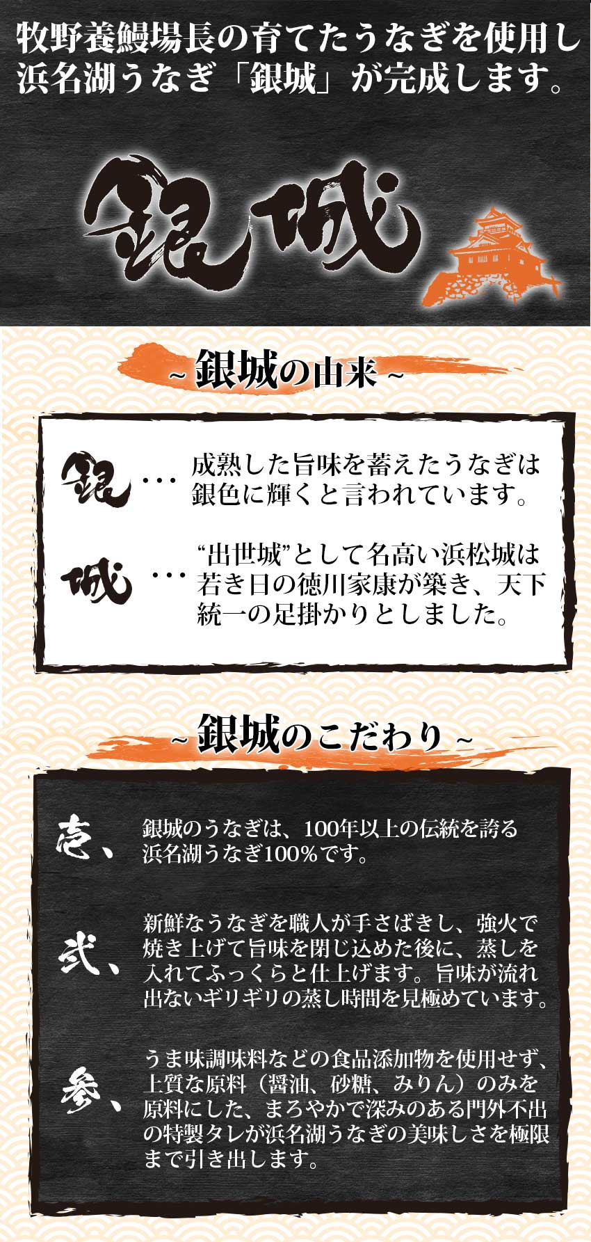 浜名湖で鰻の養殖が始まって100余年。天竜川伏流水の恩恵と受け継がれてきた養殖技術をもって浜名湖のうなぎは最高の品質に育ちます。さんぼしのうなぎは、うなぎ養殖に熱い情熱を注ぎ込む牧野養殖場長が育てたうなぎです。